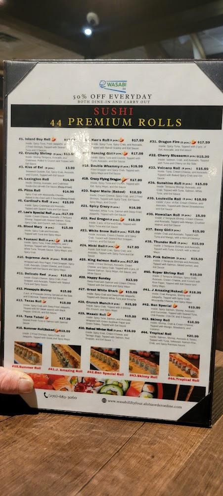 Discover Wasabi 54, a vibrant sushi restaurant located at 3238 Kidron Valley Way, Owensboro, KY. Specializing in delectable bentos, fresh sushi, and authentic Japanese hot dishes, we offer an unforgettable dining experience. Enjoy a wide selection of cocktails and beers in a modern and welcoming atmosphere, perfect for casual lunches, solo dinners, or gatherings with friends. With accessible facilities and a variety of vegetarian and vegan options, there's something for everyone. Take advantage of our dine-in, takeout, and delivery services for your convenience. Join us at Wasabi 54 for a taste of Japan right in your neighborhood!